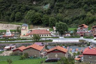 道孚民居,其独特的建筑风格以及内部精致的雕刻,堪称藏族一绝,远远望去青山绿水间点缀着错落有致的屋舍 ,宛若高高低低的琴键。叩响了山谷间的优雅乐曲,白墙、红壁 、花窗、滴水檐,每一处都恰到好处,每一处雕花都诉说着一个小小传说