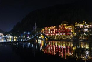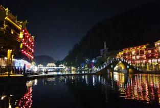 凤凰古城早就听说过凤凰古城的夜景很美丽。夜晚,漫步在沱江边,古城在灯光下美轮美奂,耳边飘过漫不经心的吉他声和歌手略带随意而低沉的歌声。还有那径通幽的长街深巷,都值得一探究竟。