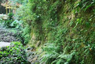从北门进西樵山风景区,第一个景点就是毕玉洞。一直沿着小路走旁边,虽然是太阳高照,但是有大树挡着,也是挺凉快的。旁边还有小桥流水,让整个人感觉起来挺愉快的。可惜真要找这个洞的时候被告知已关闭了。