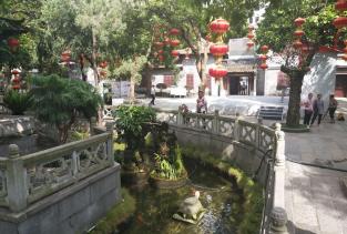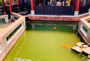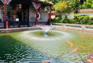 南海影视城的每个建筑都与池塘相连,形成处处是景的格局。池塘里养满了红鲤鱼和乌龟,很有趣味。不走寻常路的,也可绕着假山,池塘上石子路走上一走。园内也有展示介绍,就是假日很难找到解说员,只可慢慢欣赏墙上的木雕,园内的石雕