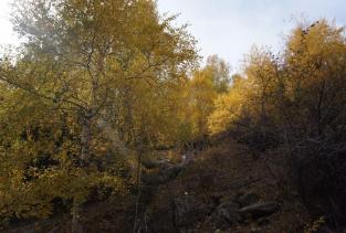 可可托海景区位于新疆阿勒泰地区的富蕴县东北侧,景区里面有幽深的峡谷、清澈透明的河水、陡峭秀丽的山峰,环境非常优美。我是秋天去的,秋日里树叶金黄绚烂,美得就像一幅画一样。