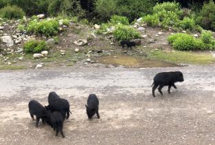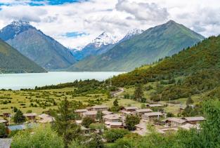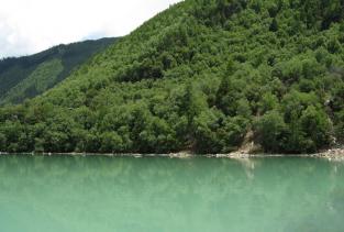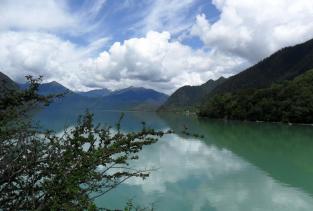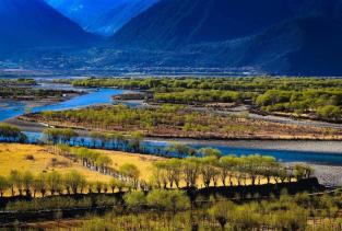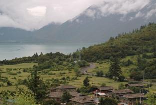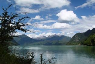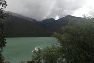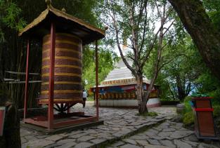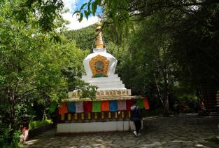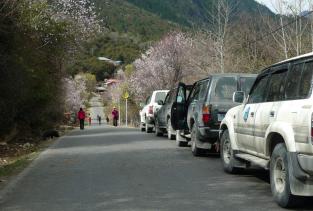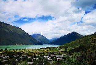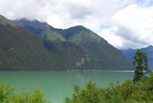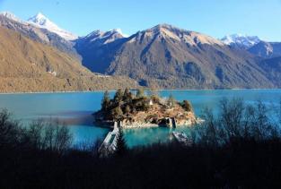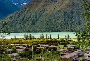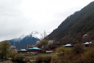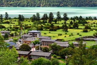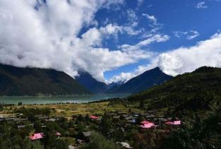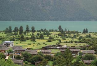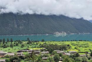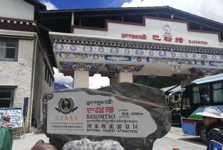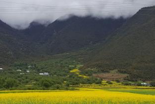 十一点三十分,租车从八一镇出发自驾游去巴松措,下午一点到达景区,游览二到三个小时,下午六点回到八一镇。住香帕拉酒店。 林芝至拉萨的高速公路已修到工布江达县。在巴河镇下高速,三十多公里的公路带你来到景区。路上停车二次,一次是油菜花开在绿色山谷,蜿蜒向上,那夺人眼球的黄色忍不住叫停司机。还有一次是司机主动停车,汹汹的水流从滚水坝跌落,轰鸣着,卷起一堆风雪,滚滚向前。站在岸边,近距离俯视激流,令人顿感眩晕,仓皇撤退。 景区票价不菲,包含两个景点和内部交通费用。首站是结巴村,由福建泉州援建。大巴司机规定了半个小时