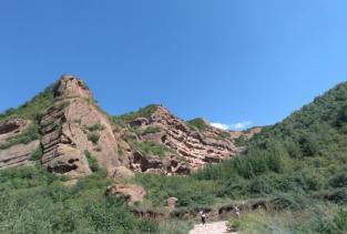 火石寨,在宁夏南部的固原市西吉县境内,属六盘山西部余脉。由于它的山峦呈现暗红色,尤其在绿树的掩映下,如同一团团燃烧的火焰,因而取名火石寨。是宁夏唯一同时拥有国家地质公园、国家森林公园、国家国土资源科普基地,自治区级自然保护区的旅游景区。门票60元/位,1.2m以上儿童半价。车不能开进景区,只好停在景区门口的停车场。景区很大,不过我们去的时候下雨,不尽兴,雨雾朦胧,景色大打折扣。