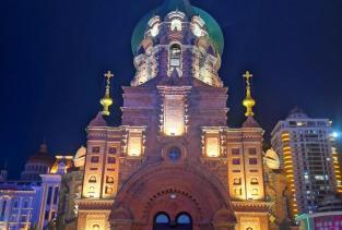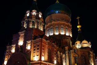 圣索菲亚教堂是俄式建筑的风格,在晚上的话会更加的漂亮,很喜欢这个教堂,不论是早上还是晚上,它都是那样的美丽,不过最近在维修好像要19年的12月才修好。