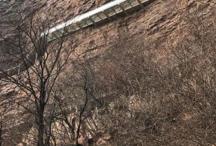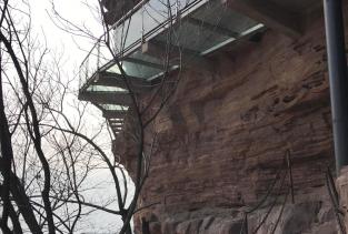 奔着有特效的玻璃栈道去的京娘湖,要先爬山,可以从半山腰坐缆车到山顶的宋祖峰云中寺就到玻璃栈道了。不是很高,不知道是天冷还是人少,没有特效。