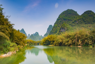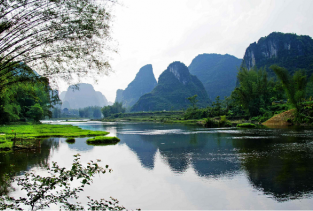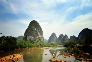 1.漓江—桂林市从桂林至阳朔的83公里漓江河段,是漓江精华,还有“深潭、险滩、流泉、飞瀑”的佳景,集中了桂林山水的精华,令人有“舟行碧