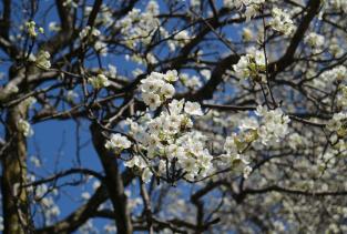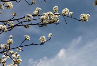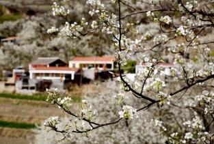 金川的梨花却与别处梨花不同,金川的梨树,树身高大,最老的一株梨树便生长了一百多年,树身高大,至今生长良好,一簇簇花朵开得非常茂盛,花瓣如丝绒般柔和。脱离了诗人形容梨花带雨的娇怯模样,反而显得雍容华贵,用金川人的话来形容:“金川的梨花就像金川人,生得大气、阳光和质朴。”