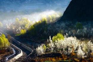 玉骨冰肌——金川梨花金川是全世界范围内最大的原生态、高海拔雪梨种植区,素来有“阿坝小江南”之盛誉。白似雪般的一簇簇梨花自大渡河畔铺