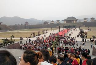 秦王宫超大的免费停车场就非常人性化,不像其他景区停车还要收费。票是网上订的,145一张。还可以不算贵。刚进去就被宏伟的宫殿震撼到,第一感觉还可以。去的那天昨晚下过雨,所以早上的秦王迎宾取消了。