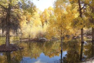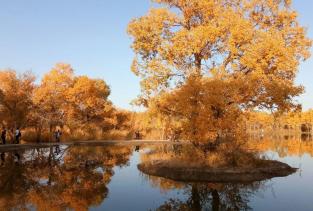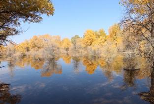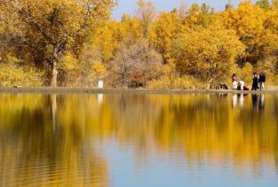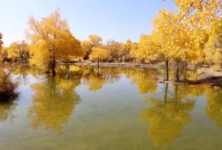 金塔胡杨林很惊艳,满目的金色倒映在湖面上,都分不出嘛边是真实,哪边是虚幻的!不枉专程绕道过去看