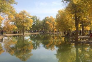 看金塔胡杨林就是要秋天去特别美,胡杨树的叶子由绿慢慢变成金黄色,在蓝天白云下的衬托下,金色的胡杨和倒影美的无法形容,只是黄的时间也就半个月左右,所以看的人也很多