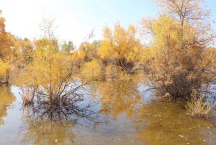 金塔胡杨林有大片的人工胡杨林和沙柳,这里可以感受到植树造林对人们生态环境的改善。