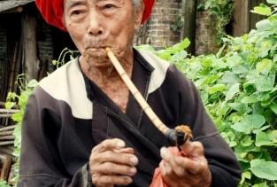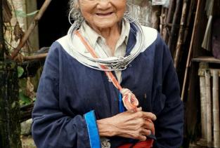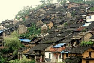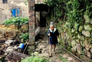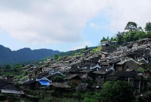 油岭瑶寨历史悠久,最多时有房屋近900幢,1000多户,5000多人,素有“千户瑶寨”之称。民居层层叠叠,错落有致,一律为青砖或木质结构。 但眼前所见却是另一番景象。 大部份老房子都破烂不堪,无人居住,只有些新建的简陋水泥砖房住着些老人妇幼。 我们徒步入村,沿着石阶拾级而上走到山顶。