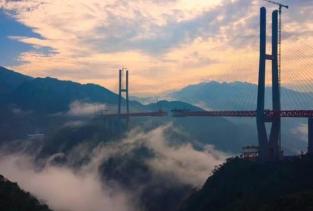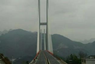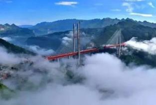 北盘江大桥礼赞北盘江上公路桥,五百六十五米高,横跨一千三百米,世界最高斜拉桥。横观绝壑铺天路,顺看险峰通大道,远眺彩虹跨深谷,仰望铁龙穿云霄。