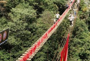 重渡沟自然风景区山不高,水帘洞很好玩,震天雷瀑布和泄愤崖瀑布很壮观,网红桥有胆量的可以一试,那里的村民很朴实,只要你不出景区可以在那里永远住下去!