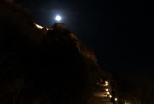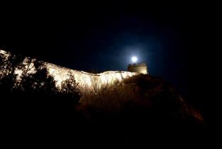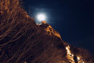 这次来到古北水镇得知可以夜游司马台长城,夜幕降临之后坐缆车来欣赏夜景,同时也是因为白天没有人陪我爬长城……不虚此行吧!缆车往返120(住酒店优惠价)单程五六分钟吧,只开放两小段,下了缆车不行十多分钟吧;边欣赏夜景边走就要更漫长一些了,从上面看古北水镇真的是个王八造型看音乐喷泉还挺清楚的!虽然只开放两段长城,但我们并不觉得遗憾,因为上来真的很冷也不想爬长城,只默默的欣赏就好了。观景望远镜免费使用哦!对准了 非常清楚 看到了相当大的月亮!