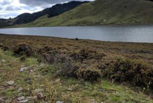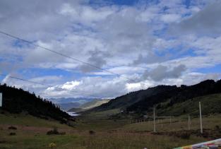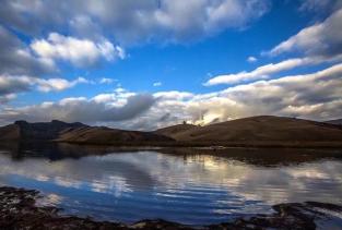 长海子,官方地名寸冬海子。出木里镇沿S219省道约40公里处右手折弯,继续上山,垭口海拔3500米左右,气温很低。远眺海子很壮观。秋天的寸冬海湖水倒映蓝天,湖中绿草浮动,远处褐色的山脉背衬,自己可以想象那种色彩的组合有多鲜明,漂亮!