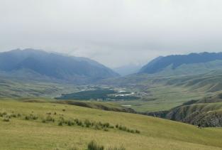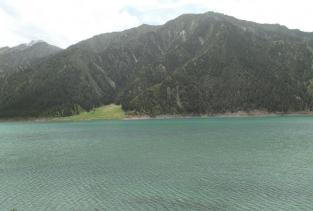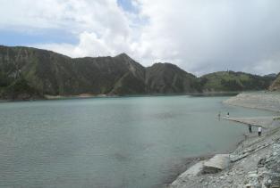 大龙池景区位于独库公路库车段,就在公路旁的一个高原小湖,不用门票,面积不算太大2平方公里左右,湖水颜色清澈蔚蓝,周边是逶迤碧绿的山岭,远处雪山背景分明。这里是游客穿越独库公路的一个拍照点。我们是6月份的时候去的,景色看起来还不错。