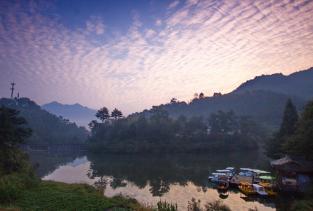 千峡湖景色相当的美,幽静的小镇,环境空气相当的好,很恬静.世外桃源,游船还有歌舞表演和仪式感,很享受的旅行.