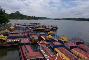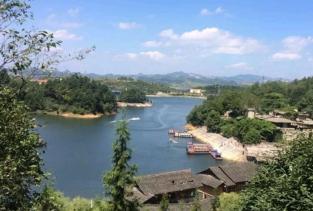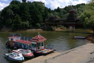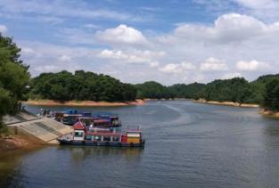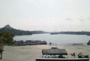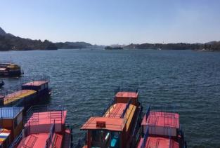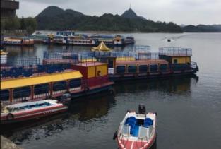 今天游红枫湖,天公便是使出本事,让我们领略不同天光下湖水的不同,水天相接色彩的不同,还有红的游船,绿的小岛在不同光线色彩的不同。 上午到达景区时,空中似乎还飘着小雨,让我不由有一丝雨中看灰蒙蒙一片水面的担心。进入景区,云层已经由灰黑变为厚棉絮,蓝天下游船的大红让湖面有了生气。 后来,白云和蓝天一起,成为涂抹点染湖面的最佳染料,它们有时是背景有时是主题,与红枫湖密不透风的绿岛共辉映。 当然,景区里还有这些人文景观,比如江总的题字。比如侗寨的鼓楼。 红枫湖的名字就让人想起色彩,尤其是期待秋天的万山红遍,水天相