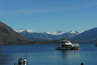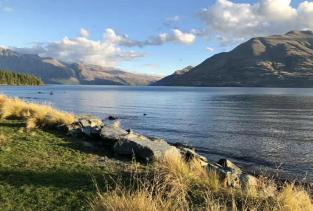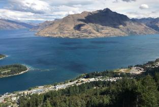 从瓦纳卡湖去皇后镇有两条路可到,一条就是沿河的比较平缓的6号公路,另一条就是翻山越岭的皇冠公路了。我们挑选号称最美的越山路皇冠公路进入皇后镇,结果和中国的大山没得比。 照片是进入皇后镇最后一个山口的照片(远处雪山和眼前的山脚下就是皇后镇了)以及瓦卡蒂普湖的风景,自驾为主,照片嘛将就一下。 这天开始天渐渐放晴了,湖区景色悦人,越发心旷神怡。