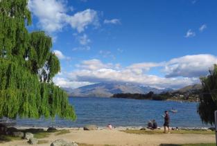 瓦纳湖是整个南岛比较大的湖泊了。它和哈威亚湖相邻。从西海岸开车而来的话可以在路上同时看到两个湖。这里的湖水呈现深蓝色,水质清澈见底。我们除了常规的在瓦纳卡镇上看了湖以外,在哈威亚湖与瓦纳卡湖交错的地方也做了停留。这里人更少,还可以看到远处的雪山。
