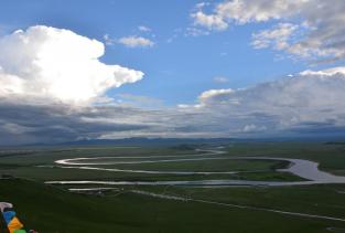 川西高原行之九曲黄河第一湾。 天下黄河九十九道湾,最美就在第一湾。九曲黄河第一湾,位于若尔盖的塘克乡,这里黄河在草原上蜿蜒流过,形成一个大大的“S”,形成了壮美的景观。特别是登高往下看,黄河蜿蜒,草连水、水连天,苍苍茫茫,叹为观止;草原上骏马驰骋,如诗如画、美不胜收!