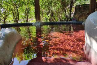 进去莲花山温泉度假区,换了门票,更衣,出门口就有温泉,红酒泉,牛奶泉,当归泉,何首乌泉,神草泉,芳香四溢,超值咯!五彩缤纷,阳光灿烂,微光嶙峋,景色宜人,服务周到,态度很好,值得的一去。