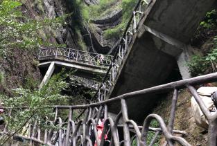 绍兴新昌十九峰景区游玩攻略:十九峰要爬上去是需要一定体力的,虽说只有999步台阶,但真的有点危险,坡度太斜,虽然有护手,但一旦脚滑很可能从台阶飞出栏杆,不建议体力差,体重大的人上去!但很多人都不知道的是沿着韩妃江走,是一条初级徒步路线,景色很漂亮,下去四五公里还是玩水不错的地方!