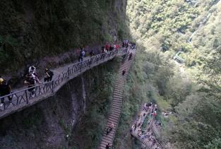 十一国庆节去绍兴十九峰景区好玩吗?人流量大,但不会拥挤,也不用排队。我们只去千丈幽谷,因为游客基本都走那里。走飞龙栈道要多收20元,爬999个台阶,不是很累。玻璃栈道太短了,刚走有点怕,最好不要看脚底。过了玻璃栈道感觉不过瘾,我们又从一线天绕回来,从走一次。景色不错,性价比高,值得去。