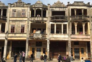 梅家大院位于广东江门台山,围起来这一圈洋楼大约成形与1930年,距今也就80多年,但已经风雨飘摇。虽是有些特色,但也没那么精巧,主要是围起来一圈形成一个小社会,这种形态还挺有意思的。