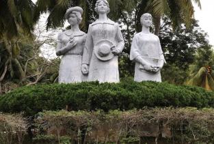 石头公园景色很美,现在也有二路公交车可以坐到石头公园了,游1是从火车站到石头公园,游2是椰子大观园绕高隆湾一圈到石头公园,目前还是免费不收门票。沿着石头公园还可以到右边的一个湾,好像那里有酒店,椰树下有大姐卖郁子,很热情地招呼游客。