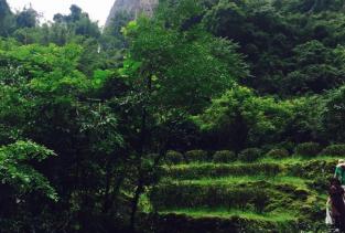 听闻大红袍的盛名,早就想到武夷山一睹真容。武夷岩茶因茶树生长在武夷山岩壁间的砾土中,山涧里而茶质独特的岩骨花香,有晚甘侯的美誉,大红袍更是其中精品。大红袍景区以六棵生长在岩壁上近三百年的母树为中心,整条山谷连绵的是不同品种的茶树。