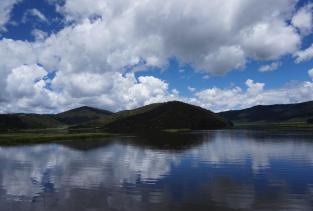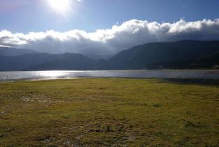 纳帕海是一块面积相当大的草地和湿地湖,周围散落着几个藏民自然村,风情和前几天去过的地方完全不同。开着车沿着纳帕海边的道路做环湖,这条道路的状况非常好,开车很轻松。