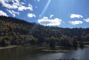 普达措国家公园目前关闭了两个核心景区,只开放属都湖。大门到景点有十多公里,要坐景区大巴进入。途中有个点可下来㱑行2.2公里,溪流边是古树,颇有一点点童趣。属都湖栈道3公里,途中见小松鼠。