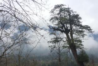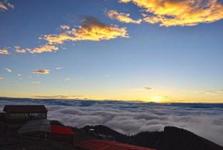到达牛背山山顶已是傍晚十分,山顶大雾。遗憾地没有看到日落美景。同时,心中默默祈祷明天早上的天气不要这样。山顶有很多驿站,都是附近村民搭建。基本都是板坯简易房,只能说比帐篷强点有限。床位费也不贵,大概一个人30-50之间。