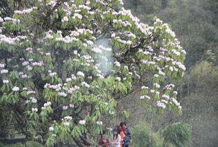 二郎山喇叭河景区被称为植物的基因库,风景秀丽,非常有名的植物品种,在这都能找到,这里满山遍野的高山杜鹃特别有名,杜鹃花的树特别粗大,花朵艳丽花色品种多,这些树应该生长了很多年,在现场看到非常震撼。