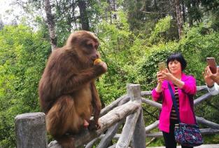 二郎山喇叭河景区野生动物很多,最主要的野生动物有猴子和鹿,这些动物和人和谐相处,完全不怕游人,给它拍照还很配合,每天晚上鹿群会集体出动到一个地方吃盐,因为那里每天都会撒上好多的盐供鹿吃。