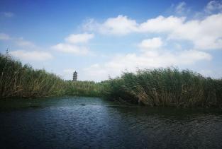 大纵湖蓝天白云芦苇荡,大纵湖里面还是蛮大的,目前开发程度一般,游人不多,特点就在于芦苇荡坐船游览,有芦|围迷宫游玩,还有大闸蟹吃,值得一去。