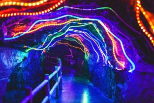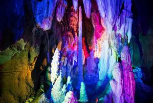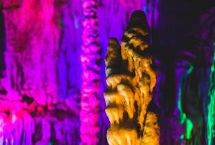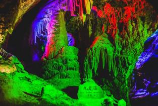 地下大峡谷溶洞里头太凉了,而且很狭窄,人又多,基本上都是走马观花。 形状各异的钟乳石,用灯光一照,五颜六色。