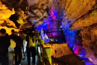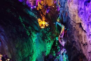 酉阳桃花源由2个景点组成,太古洞是属于地下溶洞,全长3.5公里,加了灯光效果,感觉还不错,就是楼梯上上下下有点累。。桃花源就是一个模拟深山村落的景象。,
