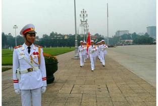 巴亭广场就在河内的市中心,是一个很大的广场,每天早上这里都有升旗仪式,广场上每天都有很多人,排队参观胡志明纪念馆,有些广场的道路有士兵把守,是不能走的,需要绕着走。