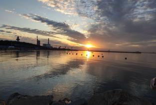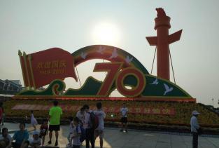 巴陵广场很大气,中间的后羿砍巴蛇很有气势,连接着洞庭湖,一侧紧挨着汴河街。交通也相当方便,步行至不同方向的3个公交站,大概就200米距离。