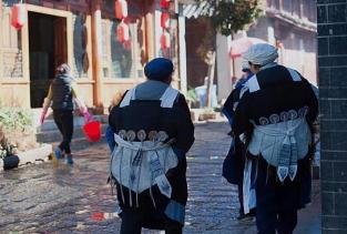 白沙古镇至今仍然保存着质朴的纳西底色和原始生态。古城里随处可见穿着民族服装的纳西族老妇。牌楼的门匾上依然清晰可见“世界文化遗产纳西古王国之都——白沙”的字样,而透过门牌,便是遥遥相对的雪山。