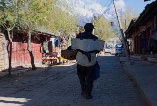 白沙古镇更为古朴和原生态,不收门票,没有规划,稍显混乱。长达2公里的白沙老街古村落,抬头远处就是玉龙雪山,非常壮观,难怪老外会更喜欢来这里白沙的建筑,很多都是泥砖结构“披星戴月”的纳西族老人白沙比丽江安静很多