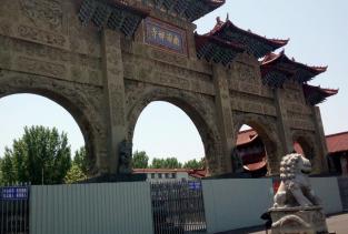 南海禅寺山门牌楼长50米,高31米。在山门内长500米,宽20米的甬道上,自北向南依次按12因缘、12生肖、12菩萨,建筑了12座花岗岩牌坊,风格独特,巍巍壮观。东北部白圣长老舍利塔,融我国古代建筑艺术与东南亚现代建筑艺术风格为一体,既高大雄伟,又典雅别致。寺院门前为三殿门,殿内两旁供奉两尊金刚为“哼哈”二将,寺内南部是以大雄宝殿居中心的殿堂建筑区。大雄宝殿内供有一尊高17米,重72吨铜雕鎏金坐像,殿前为1200平方米的广场。大雄宝殿台基上雕刻的花岗岩质500罗汉,集全国20多处罗汉堂之精华,聚优秀雕刻工