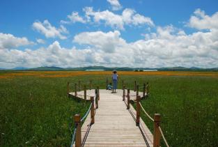 夏天去了五花草甸真的不错,我们去那天是刚刚下过雨,雨后的蓝天非常美丽,而且还有变化多端的云朵,真是饱了眼福了。我们一家三口走在木栈道上,沐浴在阳光之下,美啊!
