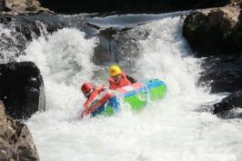 在漂流河道的中部,有一段约一公里的连续险滩区,几十个大落差接连出现,俯冲而下的快感会让带你逃离地心引力。