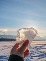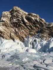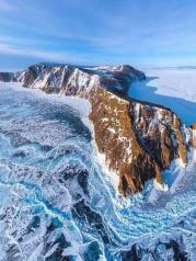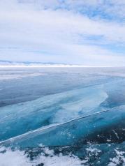 贝加尔湖蓝冰是冬季贝加尔湖的最美景致之一。冰面因为挤压形成的碎冰,破水面而出,透射着蓝天白云深蓝海水,铸就了这不可思议的画面。远远看过去,一大片的蓝冰。我们在上面行走,蓝色浸透在冰面,这是我梦寐以求的场景呀。一层一层的蓝,夹带着雪,不断推向远方,和天相结。分不清到底是云还是雪,是冰还是天。脚下就是深邃的贝加尔湖湖水~