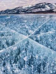 说到贝加尔湖的美,很多人第一时间会想到夏季的清爽怡人,秋季的金色浪漫。其实,贝加尔湖的冬天才更是让你唏嘘赞叹。冬季的贝加尔湖是世界上最美丽、最大的蓝色溜冰场(面积约3.1万平方千米)。每年从1月开始至5月湖水都会被冻结,而2月和3月通常是湖面冰层最厚、最稳定的时段。冰层厚达1米以上。贝加尔湖被公认为是世界上最洁净的湖泊之一,因为贝加尔湖的水中的氮、磷等营养元素含量低,所以这里的浮游生物也是非常之少的,冬季的蓝冰拥有惊人的透明度。